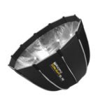 This is a hexadecagon parabolic softbox designed for use with strobes and speedlites. It comes with an outer and inner cloth that softens any harsh light. This makes it ideal for weddings, commercial advertising, fashion, live shows, studio portrait product video shooting, etc.