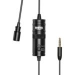 The black BY-M1 Omnidirectional Lavalier Microphone from BOYA is compatible with smartphones, DSLRs, camcorders, audio recorders Mac and Windows computers, and more. The omnidirectional pickup pattern is equipped with full, 360° coverage and the 20′ cable terminates with a 3.5mm TRRS gold-plated mini-jack plug.