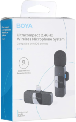BOYA BY-V SERIES Wireless Lavalier Lapel Microphone for iPhone iPad Android with MFi Lightning Connector or USB Type-C Connectors. br>Specifications of BOYA MINI Wireless Clip-on Lapel Microphone System.