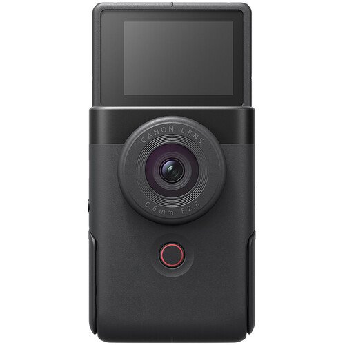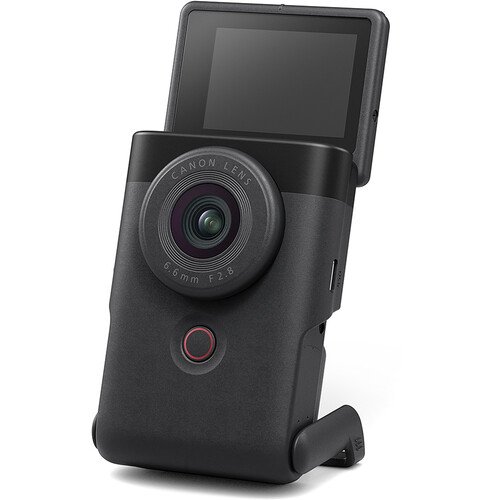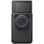 Condensing the utility of a vlogging studio into a portable, pocket-sized powerhouse, the Canon Powershot V10 is a black, vlog-ready video camera with a 19mm wide-angle lens, high-quality stereo sound recording, and a built-in 30° stand for capturing and sharing your unique story. The camera, which also shoots still photos, features the same 1″ CMOS sensor from the popular PowerShot G series cameras for shooting UHD 4K at up to 29.97 fps or Full HD at 59.94 fps. Immediately share your creations with the built-in Wi-Fi capabilities and the Canon Camera Connect app, or live stream to your followers in Full HD at 30 fps.
