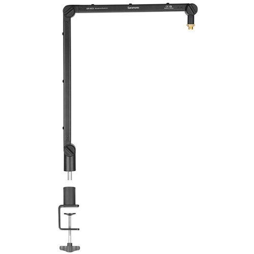 Get precise positioning for your broadcast microphone quickly and easily with the SR-HC5 from Saramonic. Well suited to podcasting, broadcasting, live streaming, and home recording, this boom arm attaches to your desk or tabletop with a simple yet durable C-clamp and offers three locking knobs to ensure you get the mic in the best spot to optimize its performance. Made from aluminum alloy, the arm offers a 17″ maximum horizontal reach and a vertical height up to 26″, while the cable catch helps keep the XLR cable (available separately) neat and tidy. A 5/8 to 3/8″ threading adapter is included.