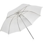 This 33″ White Translucent Umbrella from Impact is a versatile all-around light modifier that will create a pleasing light that’s far less harsh than a bare light source. It can be used with flash, LED, or fluorescent light sources. As a shoot-through umbrella, it broadens and softens the light source output and minimizes shadows, making it ideal for portrait photography. The translucent fabric’s diffusing properties allow light source to be placed close to a subject for a softer light that’s also great for weddings and fashion. It has a standard size 8mm umbrella shaft that is compatible with most umbrella mounts.